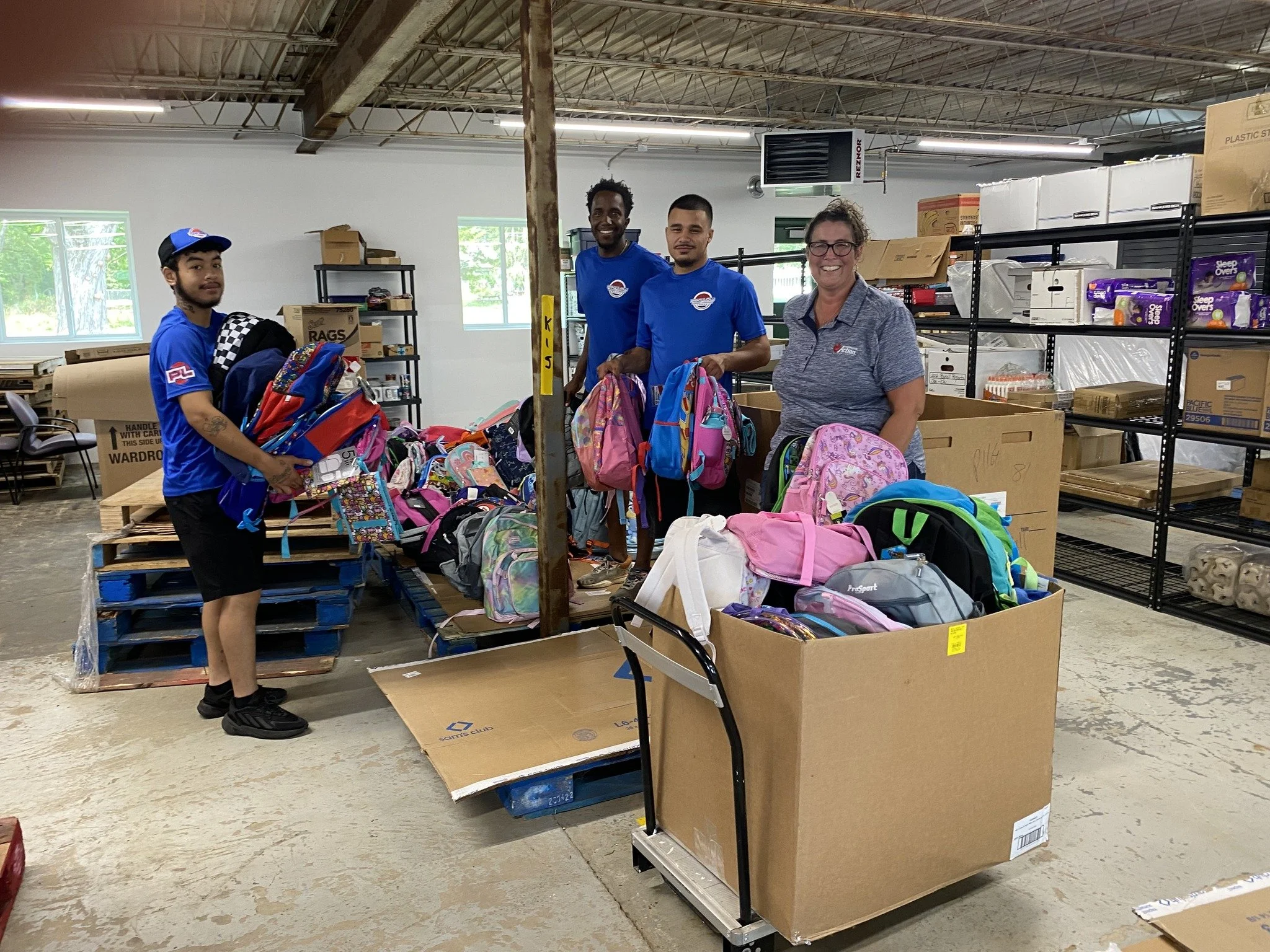 Once the donations roll in, buses packed with supplies make their way to a warehouse space provided by Santa Claus Girls. There, teams of volunteers spend two full days unpacking, sorting, counting, and preparing supplies. It’s a carefully choreographed process designed to make sure every pencil, notebook, and backpack is accounted for and ready for delivery. Thank you to Pro-Low Moving for transporting hundreds of backpacks to Allegan.