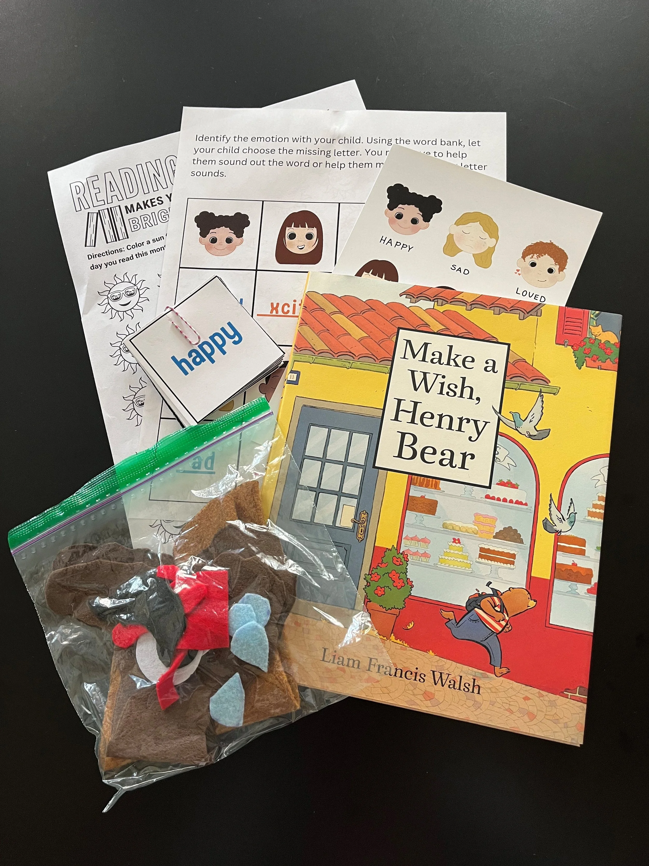 Kit includes; a book, matching game, eyes for emotions felt activity, amd 30-day reading chart.